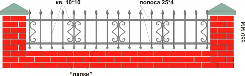 Кованые вставки в забор